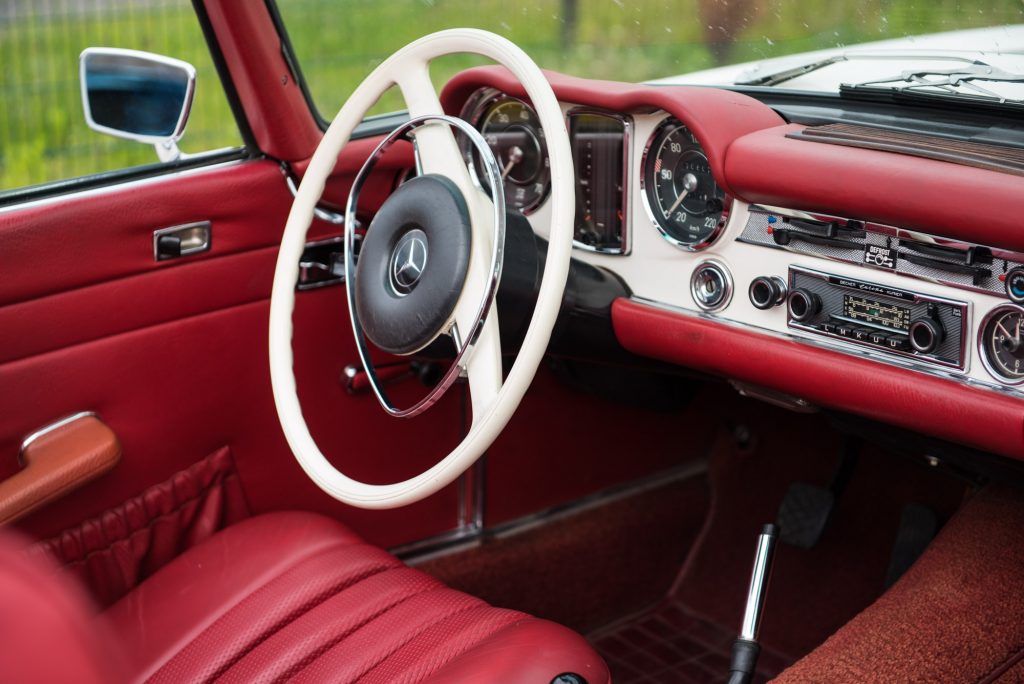 Dieser Mercedes-Benz 280SL Roadster aus der Serie 113 (Pagode) wurde 1969 in die USA geliefert und verblieb dort all die Jahre, bis ein niederländisches Handelshaus den Wagen nach Europa holte. Der Wagen war in einem ordentlichen, gebrauchsfähigen Zustand und sollte restauriert werden. Ziel war es, das komplette Fahrzeug der Werksauslieferung mit Hardtop möglichst nahe zu bringen.