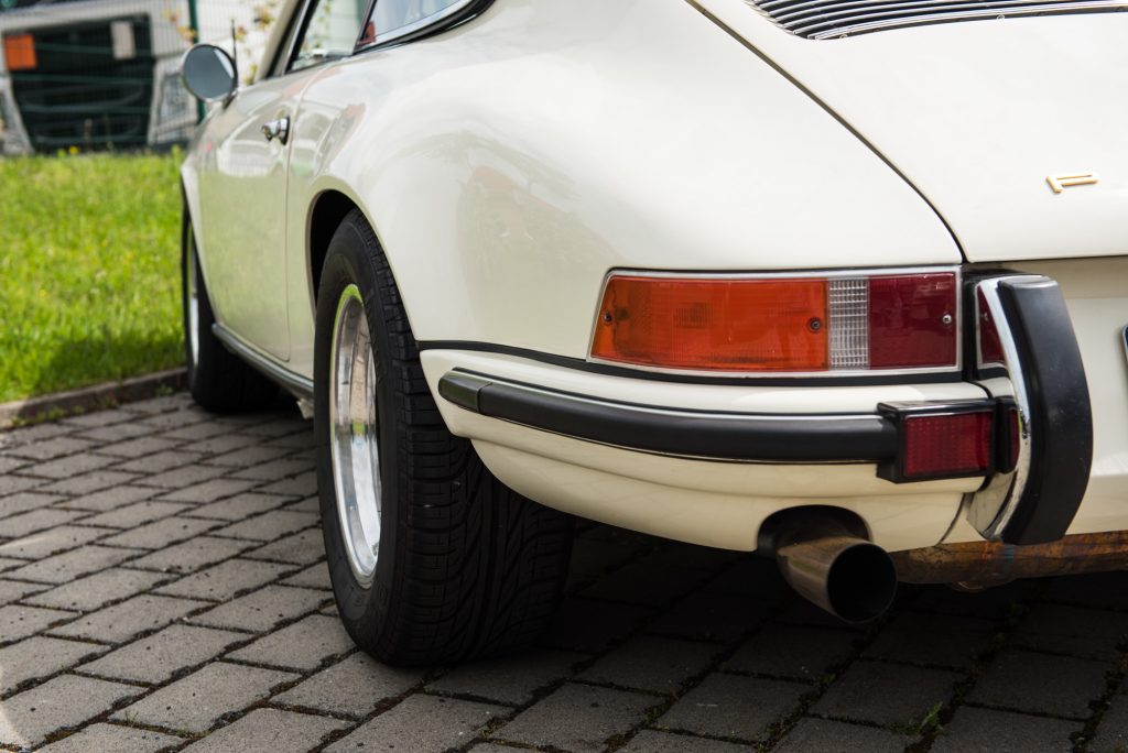 Karosseriebasis 77er Carrera – verzinkt und leicht, Maschine 3.2 Liter Carrera – einer der besten Motoren, die Porsche je gebaut hat, Fahrwerk und Bremsen vom 930 Turbo. Die Karosserie ist vollständig auf F-Modell Look getrimmt. Komplett in Blech von Hand angepasst. Kein GFK, kein Plastik, kein Spachtel. Sondern ein Neuwagen, wie er eigentlich auch in Zuffenhausen vom Band hätte laufen können. Ist er aber nicht, sondern bei Bischof Klassik Werkstatt. Auch innen erkennen nur Profis, dass es sich hier nicht um einen 1969er S handelt. Leder-Sportsitze, Moto-Lita Lenkrad und Originalradio machen die Illusion perfekt.